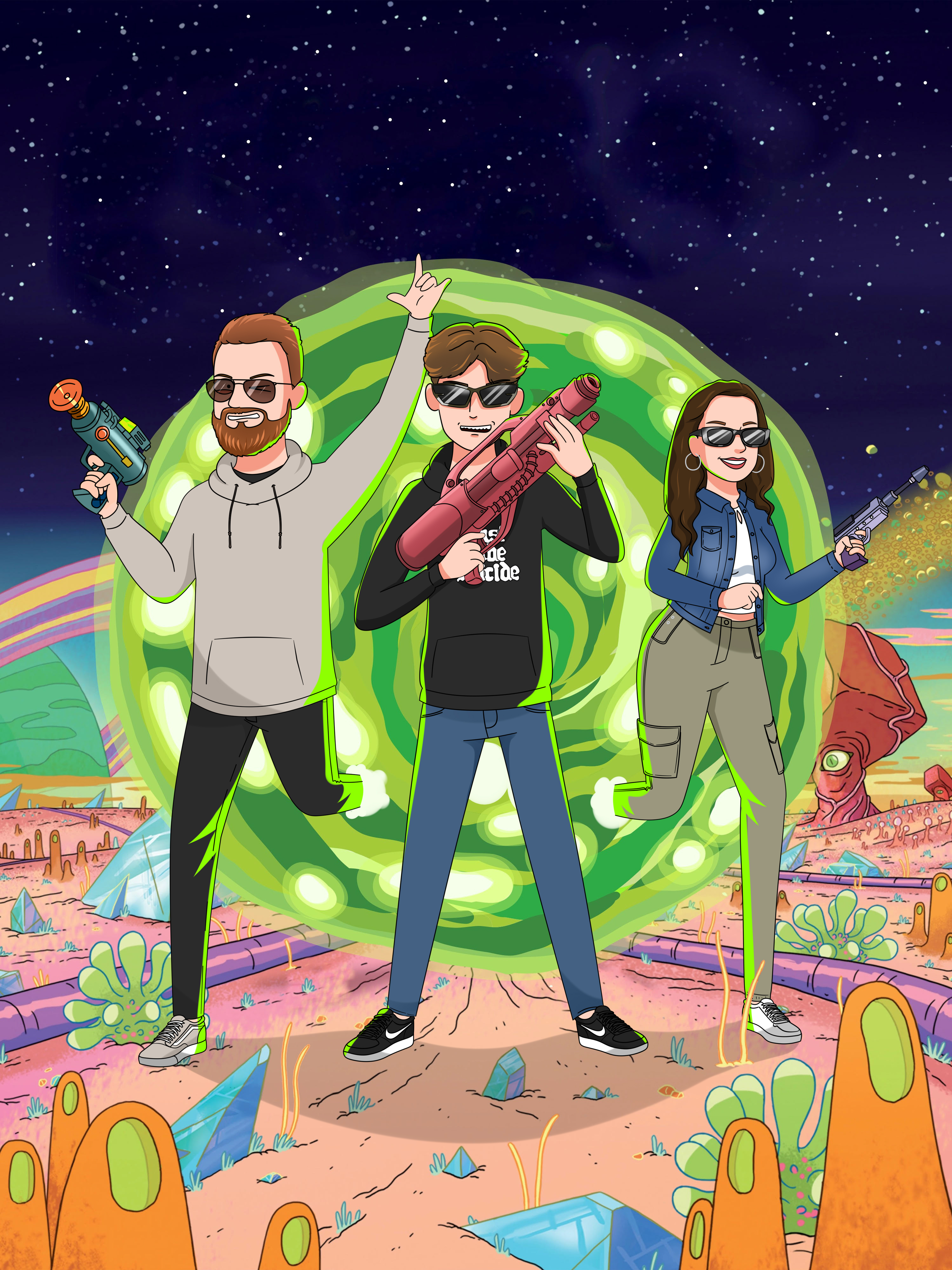 Get drawn with your friends, family or favorite celebrity! Ricktify allows customers to have custom portaits with up to 6 people/pets.
